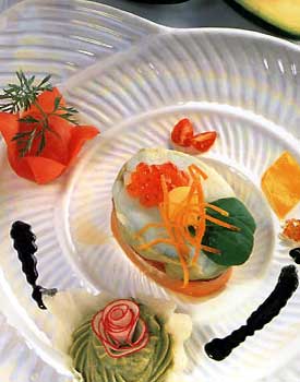 ENSALADA DE LAMINAS DE BACALAO CON ESPUMA DE AGUACATES AL ACEITE DE CHIPIRON